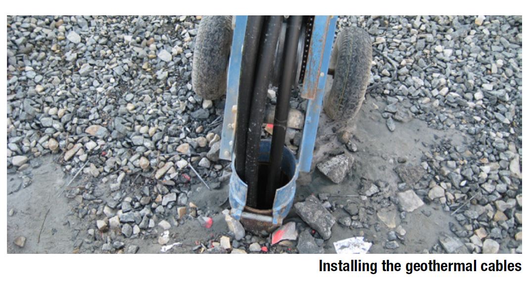 Geothermal energy, extracted from forty 170 m (573 ft.) deep boreholes, is being used to heat and cool the newly constructed 11 000 m3 municipal office in the city of Lund in southern Sweden. The formation includes both soft and hard layers of rock.